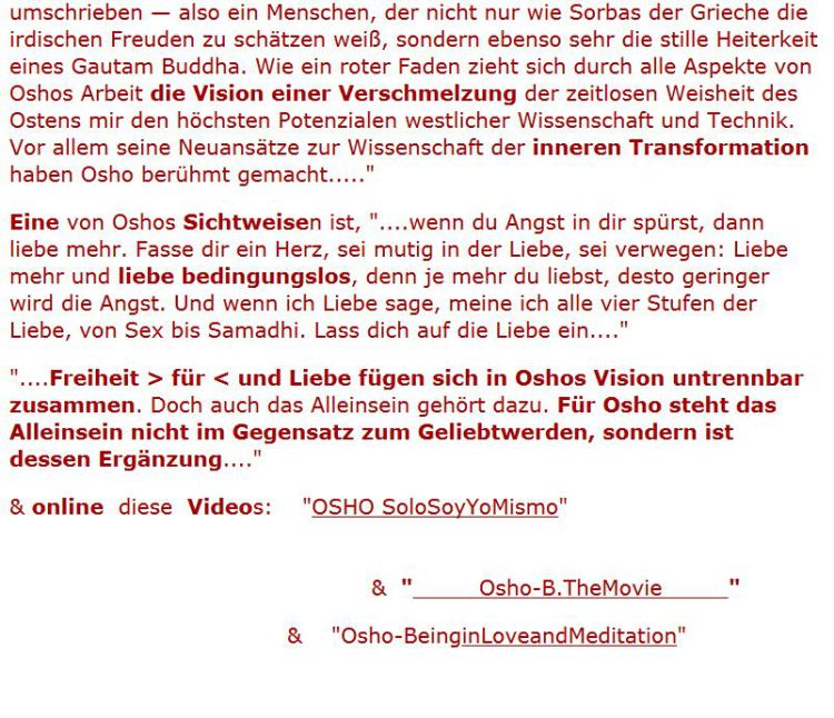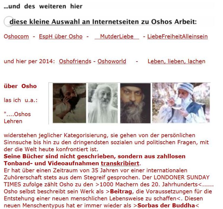 Folgende Anmerkung bzgl. einiger Videos mit Osho aktuell fehlend im Internet, ergänzt 2019: