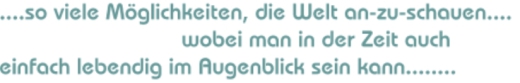 Die Welt lebendig entdecken und erleben, dazu braucht es für mich aber auch, mich auf so manches ganz einzulassen, auch mitunter ganz hautnah zu er-leben. All-ein erleben, entweder mit bzw. ohne Begleitung, oder sonst vielleicht auch einsam, ebenfalls entweder mit bzw. ohne Begleitung. Wenn ich lebe, dann ist jeder Tag ein wenig anders, mancher Tag ein wenig bewußter. Und irgendwann mag es dann soweit sein, was leben vielleicht so anziehend macht: