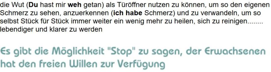 Diese Suche nach Wegen, wie gerade eigene einschränkende Handlungs- und Denkmuster verwandelt, "erlöst" werden können, macht ein jeder für sich. Es ist für mich ein